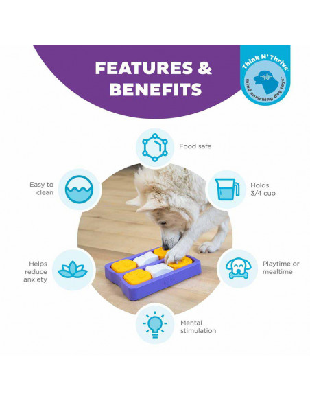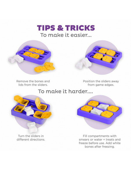 Nina Ottosson by Outward Hound Mini Dog Brick interaktiva hundpussel är ett roligt sätt att introducera hundpussel för din hund och få dem entusiastiska över problemlösningsspel! Detta nivå 2 mellansvåra hundpussel håller hundar sysselsatta med godisfokuserade utmaningar som stimulerar din hunds sinnen och utnyttjar deras naturliga instinkter att jaga och söka efter mat. Som ett resultat ger våra berikningsleksaker för hundar mental och fysisk träning, hjälper till att lindra stress och minska tristess för gladare och friskare hundar. Dog Brick har flera godisfack att fylla med godis för att motivera din hund att lösa pusslet. Se din hund använda sin hjärna för att nosa upp godisarna, sedan öppna lock, skjuta de röda skjutreglagen och ta bort hundbenskåpor för att avslöja de dolda belöningarna! Eftersom alla hundar är unika kan du variera svårighetsgraden på detta hundmatspussel för att möta din hunds problemlösningsförmåga, med flera sätt att göra det enklare eller svårare för ditt husdjur. Dessutom är detta hundgodispussel lätt att rengöra och tillverkat av livsmedelssäkra material som är BPA-, PVC-, bly- och ftalatfria för din bekvämlighet och sinnesro. Detta nivå 2 mellansvåra hundpussel är vårt mest mångsidiga spel hittills och ett utmärkt sätt att introducera hundpussel för ditt husdjur; perfekt för husdjur med liten eller ingen pusselerfarenhet; involverar flera enstegsaktioner.