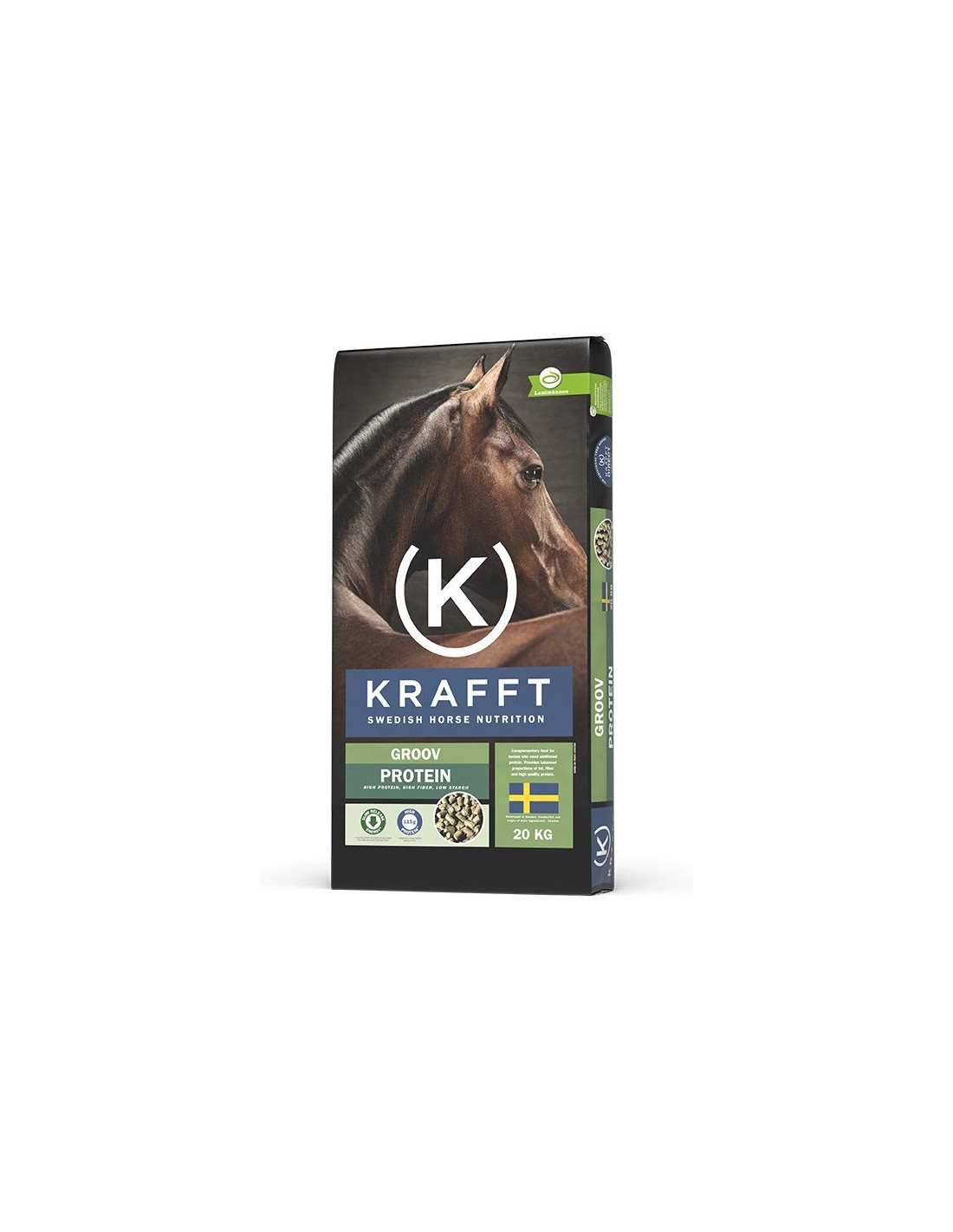 Ett kompletteringsfoder som säkrar intaget av kvalitetsprotein och fibrer hos alla hästar. Innehåller en hög nivå protein som är lättsmält och har en hög andel essentiella aminosyror. Passar ett något proteinfattigt grovfoder eller hästar som har ett ökar behov av protein. Ger en långsam och långvarig energi.