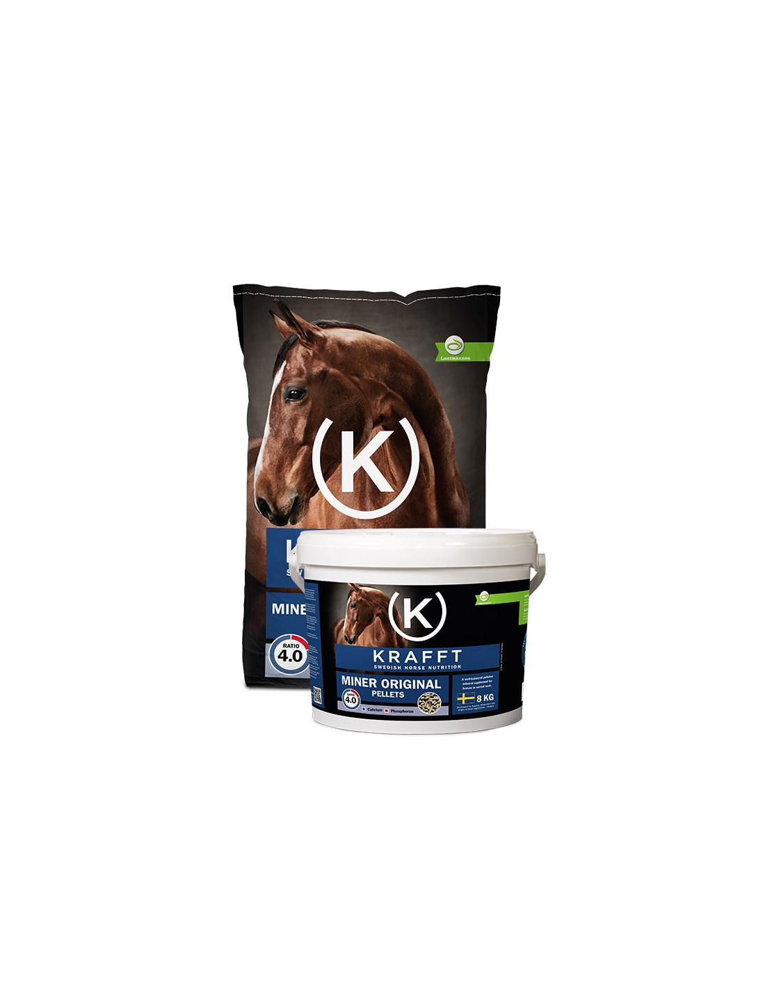 Miner Original är ett välbalanserat mineraltillskott för hästar i normalt arbete, om inte mineralinnehållet i övrig grov- och kraftfodergiva är tillräcklig. Finns i 5 mm pelleterad form, samt även i granulerad form.