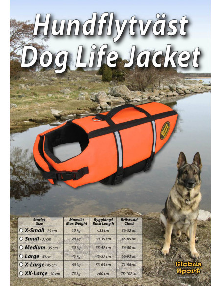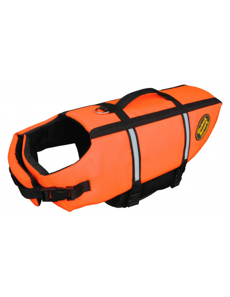 Designen av denna flytväst gör att den får en flexibel och komfortabel passform. Skyddar mot både kyla och hetta. Maggjord och bröstrem är lätt anpassbara för hundens storlek, och har kardborre och snabbspännen för bekväm på- och avtagning. Bred neoprenfodrad maggjord för bästa komfort. Den självlysande oranga färgen tillsammans med extra reflexer, ger högsta synlighet och säkerhet i dåliga väderförhållanden. Den främre bröstremmen har även flytsegment för att hålla upp huvudet. Lyfthandtag på ryggen för att snabbt kunna lyfta upp mindre hundar direkt ur vattnet, eller för att säkra större blöttyngda hundar. D-ringen kan användas för att koppla hunden, eller för att säkra hunden med löplina på t.ex. båten.